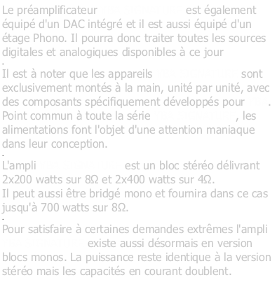 Accès aux tarifs Amplis.    Accès aux tarifs Lecteurs CD.    Accès aux tarifs DAC.    Accès aux tarifs Etages Phonos.